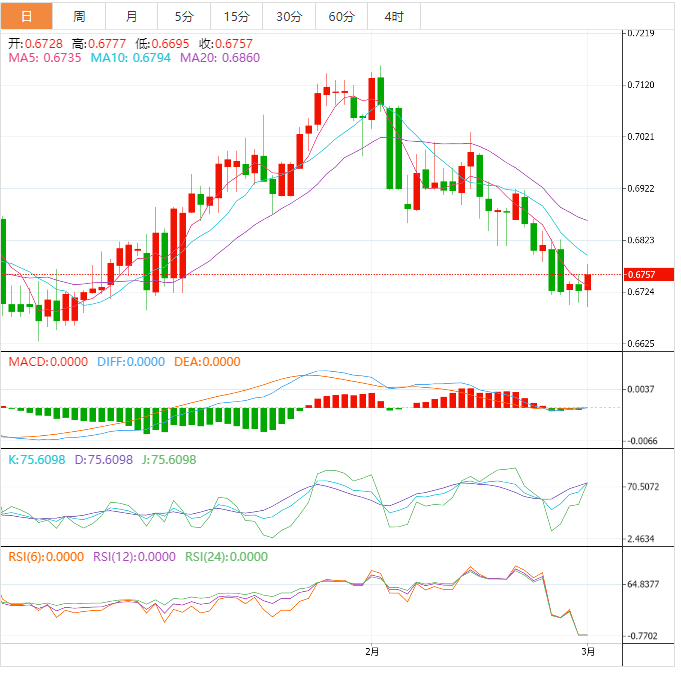 澳元兑美元仍在0.6755附近盘桓,因交易员等待更多信号来支撑周四亚洲市场早盘从两个月低点反弹的最新行情。在美国国债收益率强劲、美国数据大多乐观的背景下,澳元兑美元很难证明美元走软以及与中国相关的市场乐观情绪是合理的。 澳元/美元汇率走势基本面解读 尽管如此,在强劲的中国2月份活动数据发布后,澳元对