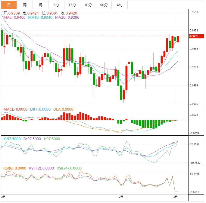美元兑瑞郎在3月份开局低迷之后,在0.9400附近舔舐伤口,因为瑞士货币对在周四早些时候获得买入价。这样一来,这句话就证明了国内悲观的统计数据是合理的,而美国数据的细节则更为坚定,以及强劲的国债收益率和美联储的鹰派言论,这可能会让人想起美元多头。 尽管如此,瑞士1月份实际零售额同比萎缩2.2%,预期增长2.2