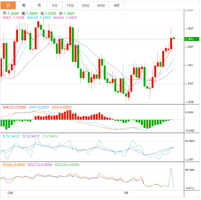 周一亚洲交易时段,美元兑加元在盘中底部1.3590附近守住了较低的位置,延续了前一天从七周高点的180度大转弯。 加元对最近的疲软可能与相对强弱指数(RI)的超买状况有关,同时也未能提供一个超越06年1月波动高点的日收盘价。回落走势也从两周前阻力线的下行突破中获得线索。 然而,看涨的ACD信号和2月14日以来的