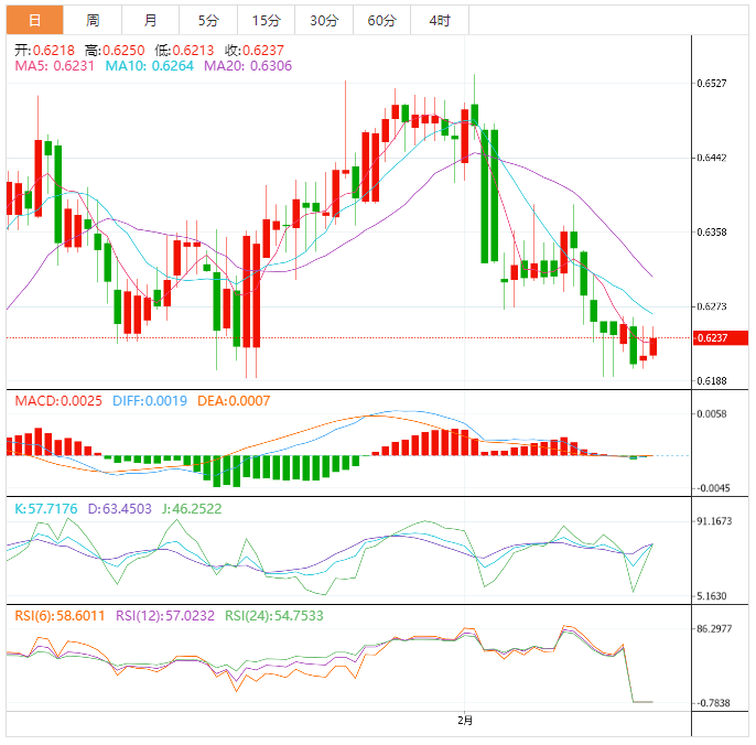 周四盘中,纽元兑美元上涨至0.6238,涨幅0.31%。 基本面上,美国通胀需要立即採取措施应对,因此,美联储不会暂停紧缩政策,因为这可能会削弱为降低通货膨胀而做的努力。美元指数继整理至104.00附近后,延续下行势头正停滞。然而,市场情绪积极可能会继续打压避险资产。 技术面上,纽元兑美元在图表上所示的横盘轨
