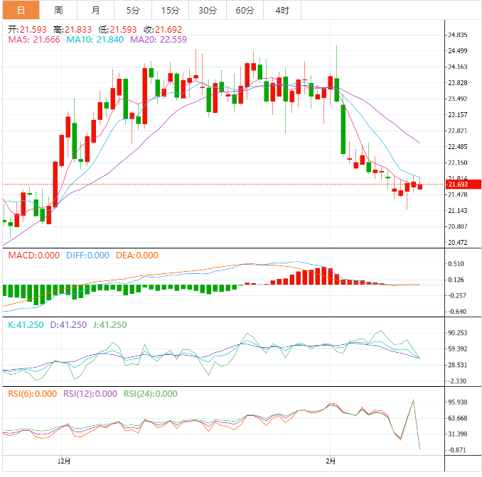 由于美国假日,白银价格周一出现上涨,流动性状况不佳。然而,金价涨势在一个技术节点上受到限制,重要的200日指数移动平均线(A)拒绝金价上涨。因此,白银回落,并稳定在每盎司21.79美元左右。 白银日线图显示,白银现货价格上方存在大量阻力位,以200日均线21.93美元为首,其次是100日、20日和50日均线,分别