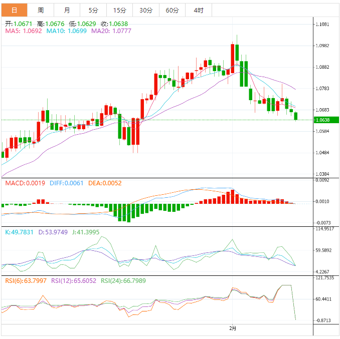 周五盘中,欧元兑美元下跌至1.0639,跌幅0.32%。 欧元基本面:欧元区内欧洲央行月度公报和欧央行政策制定者发布最新讲话,欧央行执行委员会成员法比奥·帕内塔和首席经济学家菲利普·莱恩,都表明在经济紧张之际,有必要採取谨慎的货币政策举措。接下来,在下周联邦公开市场委员会(FOC)货币政策会议纪要公佈之前,欧