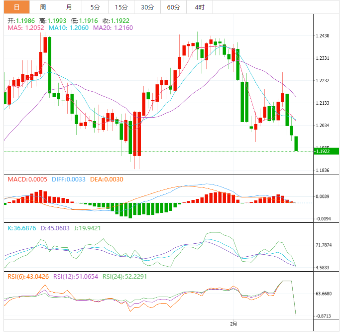 周五盘中,英镑兑美元下跌至1.1923,跌幅0.58%。 英镑基本面:由于英国1月零售销售数据意外积极,英镑兑美元自1.5个月低点反弹至1.1950。退欧方面的乐观情绪也增强英镑反弹。不过美元广泛走强断案该货币对。英国1月零售销售环比增长0.5%,预期-0.3%,前值-1.0%。1月零售销售年率下降5.1%,预期-5.5%,前值-5.8%。经历