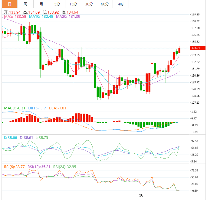 周五盘中,美元兑日元上涨至134.67,涨幅0.53%。 基本面上,美元/日元继前日小幅下跌后重获上涨动能,反弹至接近今年以来的高位。美元/日元交投于134.70-134.75区域附近,似乎有望延续本月初以来的上升趋势。本周最后一天,美元的买盘仍然有增无减,因为市场愈发预期美联储将坚持其鹰派立场,因此成为美元/日元利多因