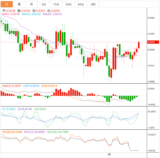 周五盘中,美元兑瑞郎上涨至0.9297,涨幅0.40%。 基本面上,瑞士第四季度工业生产数据高于上季度5.2%,这对美元/瑞郎交易员来说非常重要,他们需要观察明确的方向。然而,由于美联储的鹰派倾向,多头不太可能放弃控制权。 技术面上,美元兑瑞郎突破0.9250水平转向上涨,目标是0.9316水平,这是从1.0147到0.9060下