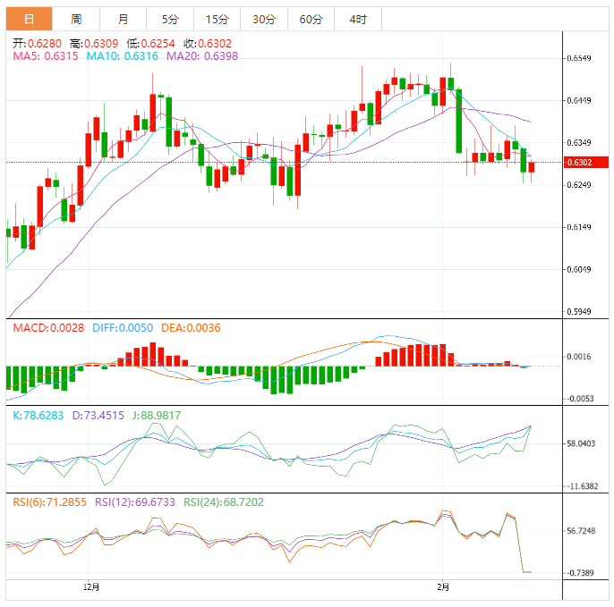 周四盘中,纽元兑美元上涨至0.6304,涨幅0.35%。 基本面上,纽储行将于2月22日召开利率会议,会议将决定如何设立官方现金利率(OCR)。与市场认为纽储行需要继续快速加息的预期相反,新西兰银行表示,纽储行应该暂停加息,并称全国正处于紧急状态。这些建议是在飓风加布里埃尔对新西兰尤其是在霍克斯湾造成巨大破坏之后
