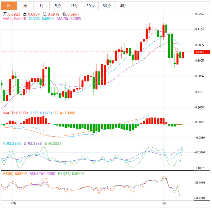 周四盘中,澳元兑美元在0.6920附近构筑间中支撑。 澳元基本面:由于澳元/美元未出现回调迹象,澳元/美元预期将延续下跌势头。另外,由于投资者预计美联储进一步加息将加大美国经济衰退前景,市场风险状况为负面。美国劳动力市场数据强劲,引髮美联储进一步收紧政策的风险,美元指数寻求突破103.00。另外10年期美债收