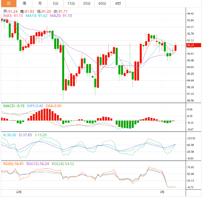澳元兑日元买入价刷新盘中高位92.00附近。周二早盘,澳大利亚储备银行(RA)宣布连续第四次上调基准利率0.25%。澳洲联储与市场预期相符,并允许该货币对连续第二天保持坚挺。 由于加息已被广泛消化,且澳洲央行未能提供任何主要的鹰派线索,澳元/日元未能为加息欢呼,在两天的上行趋势中保持温和上涨。澳大利亚央行无