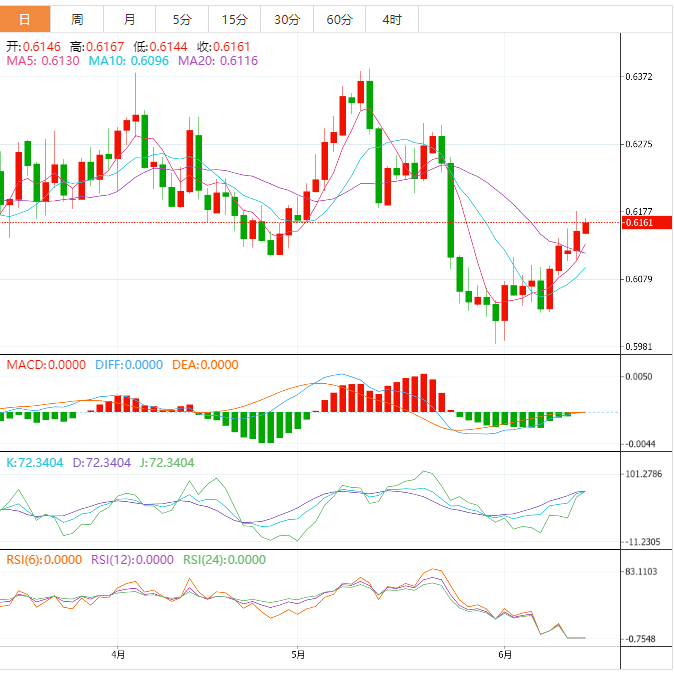 纽元兑美元在东京交易中从低点0.6144升至新高0.6161,上涨了0.17%。周二发布的通胀报告显示核心通胀出现粘性,今天的焦点是美联储。 数据显示,美国消费者价格指数继4月上涨0.4%后,上月小幅上涨0.1%,5月核心CI上涨0.4%,连续第三个月涨幅相同。然而,美元减少了最初的下意识损失,因为这个数字太高,无法与美联储2
