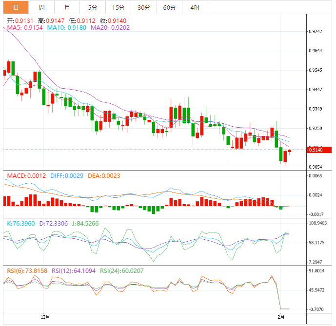 周五盘中,美元兑瑞郎上涨至0.9141,涨幅0.10%。 基本面上,美元兑瑞郎于欧市早盘在0.9150下方表现乏善可陈,此前逐步上涨。由于投资者避免在美国非农报告前大举建仓,该货币对难以延续涨势。市场人士将密切关注的经济催化剂将是劳动力成本指数数据。根据共识,平均时薪年率为4.9%,前值4.6%。环比增幅料稳定在0.3%。