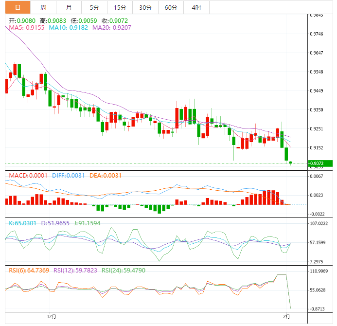 周四盘中,美元兑瑞郎下跌至0.9073,跌幅0.06%。 基本面上,美元兑瑞郎仍处于2021年8月以来的最低水平,空头欢呼在0.9065附近的三天下行趋势。在市场参与者等待关键的央行决定和美国1月份就业报告之际,瑞士法郎扩大了美联储引发的损失。由于悲观的美国数据加上美联储鸽派加息,美元兑瑞郎在前一天刷新了多日低点。展