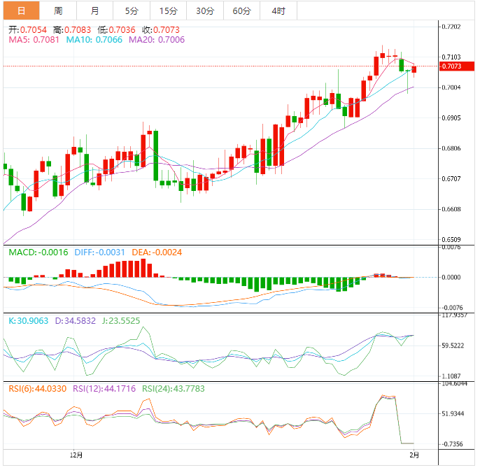 周三盘中,澳元兑美元上涨至0.7075,涨幅0.27%。 澳元基本面:澳元兑美元延续前日自一周多低点0.6985区域以来的强势反弹行情并在周三获得一些后续牵引。现货价格在欧市早盘攀升至0.7075区域,但在关键央行事件风险之前,随后任何涨势更可能依然受阻。焦点仍将是货币政策声明和鲍威尔在会后新闻发布会上的讲话。投资者