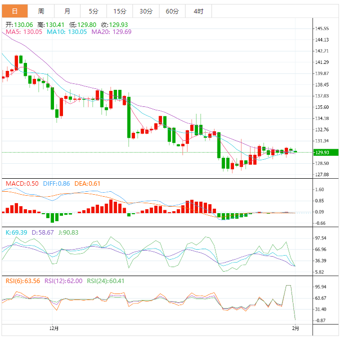 周三盘中,美元兑日元下跌至129.94,跌幅0.08%。 基本面上,美元/日元难以获得任何有意义的牵引力,在不温不火的收益/轻微的损失之间摇摆不定。现货价格保持在130.50水平以下,因为交易员似乎不愿意并热切地等待为期两天的FOC货币政策会议的结果。市场参与者现在期待著美国的经济日程表,包括AD私营部门就业报告、I