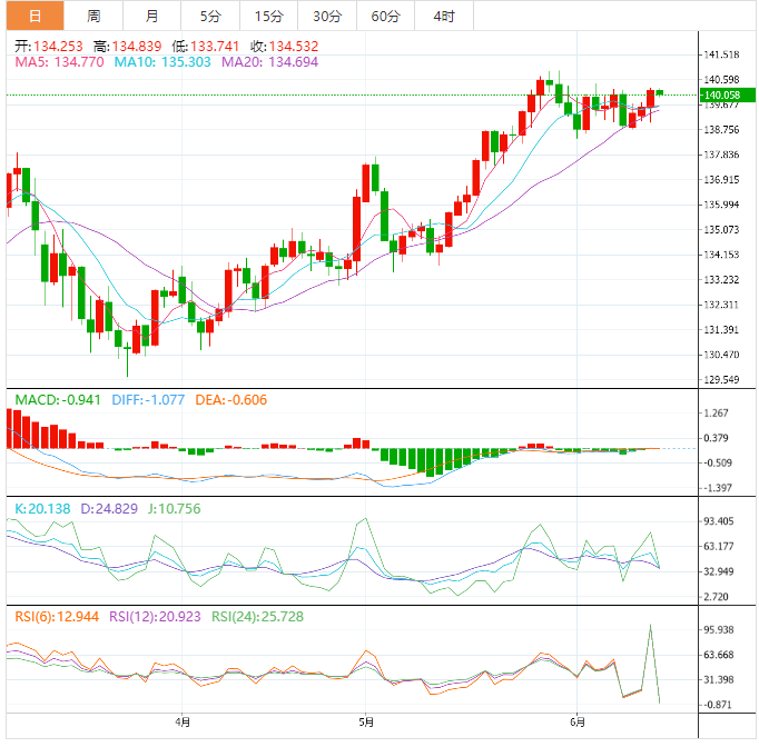 黄金价格走势综述 周三亚洲时段,黄金交投于1943.31附近。金价周二下滑,美债收益率反弹,在数据显示美国5月消费者物价涨幅放缓后,交易员坚定了对美联储将维持利率不变的押注。美国10年期国债收益率升至3.807%,使非孳息黄金的吸引力下降。交易员们现认为,美联储有90%以上的可能性放弃连续第11次加息、在周三将指标