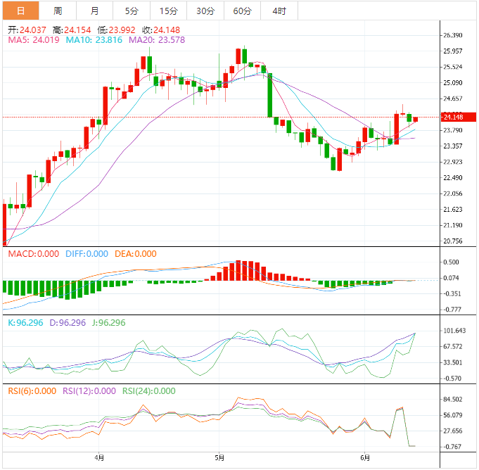 银价保持在24.10美元附近,刷新盘中高点,扭转周二亚洲市场开盘以来的跌势。 在此过程中,白银延续了周一晚些时候从100小时移动平均线(HA)反弹的势头。ACD指标上的看涨信号和RI(14)线附近50的水平增加了上行势头。 然而,在5月份美国消费者价格指数(CI)突破24.20美元阻力汇合点之前,50-HA和周五开始的下跌趋