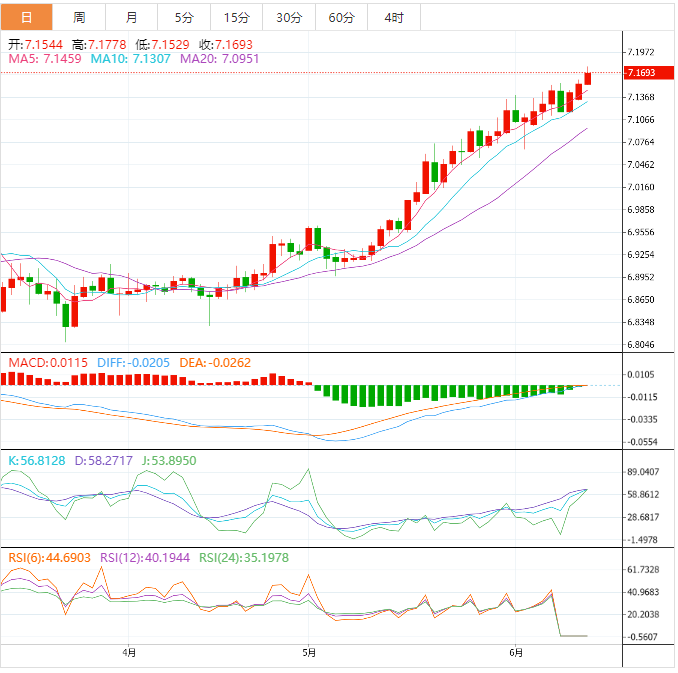 由于中国央行周二早间出人意料地降息,美元兑离岸人民币再创多日新高。也就是说,中国人民银行(oC)将回购利率从2.0%下调至1.9%,并推动离岸人民币(CH)价格上涨至7.1750,这是自2022年11月底以来的最高水平,截至发稿时约为7.1710。 随着中国人民银行的降息证实了之前的担忧,表明世界上最大的工业参与者经济增长放