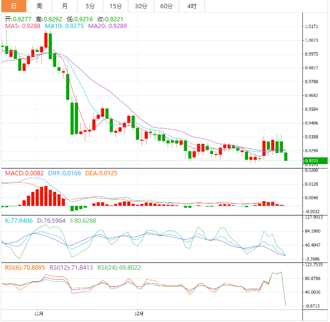 周一盘中,美元兑瑞郎下跌至0.9225,跌幅0.60%。 基本面上,美元/瑞郎难以突破0.9370阻力,跌破20日指数移动平均线(A),由于美元疲弱,美元/瑞郎跌破0.9300。继周三触及高位0.9398附近后,美元/瑞郎反转结束连续三日的涨势。美元/瑞郎跌破20日均线0.9317,继续下跌接近日线低点0.9253,但该水平维持强支撑,引发汇