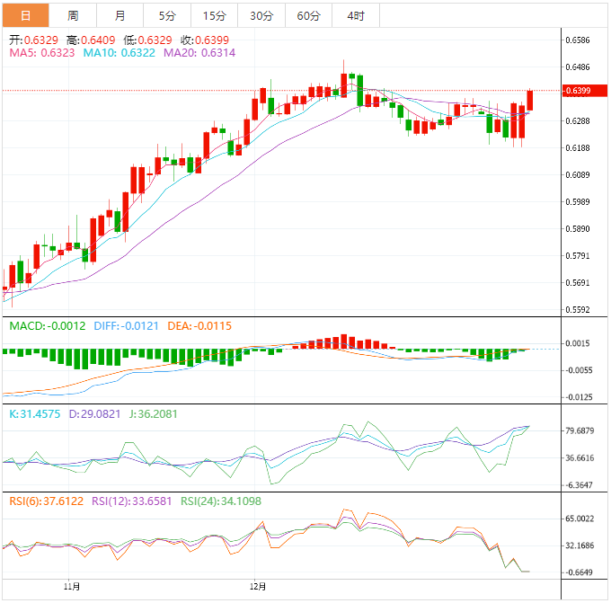 周一盘中,纽元兑美元上涨至0.6401,涨幅0.87%。 基本面上,纽元/美元从日低点上涨了100个点,目前交易于0.6290,维持强劲的看涨基调。在高于预期的非农就业报告发布后,美元转为下行。然后短暂回升,在I12月服务业报告显示跌幅大于预期后,美元再度下行。美国国债收益率暴跌,10年期国债收益率从3.75%跌至3.61%,