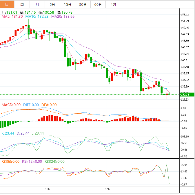 周三盘中,美元兑日元在跌至八个月低点后大幅攀升,上一次出现在2021年6月的129.50左右,在130.90左右,因为美元成为周二交易中最强劲的货币。因此,美元/日元交易于131.01,比开盘价高出0.25%。 美元兑日元技术展望 美元/日元日线图显示该货币对呈下行偏向。然而,周二的价格走势在下跌趋势之前形成了一个锤子,