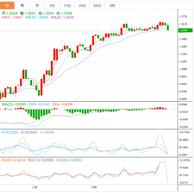 周二盘中,欧元兑美元下跌至1.0598,跌幅0.62%。 欧元基本面:由于美元指数反弹走势回落,欧元/美元已经反弹。总体而言,投资者正观望欧元区消费者价格调和指数,欧元/美元出现盘整,以寻求新动能。12月德国调和通胀指数预期将自前值11.3%升至11.8%。德国的通胀压力似乎是由薪资水平不断上升推动的。欧央行行长拉加德