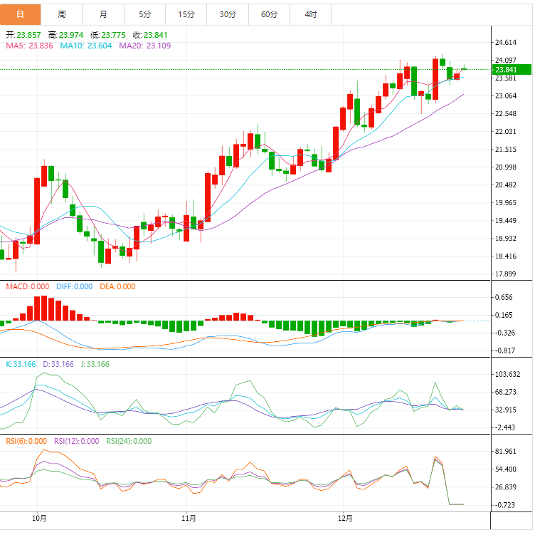 亚太市场行情走势分析 1)亚太市场 A股市场:上证指数今天收盘报3095.57点,涨幅0.98%;沪深300指数今天收盘报3887.85点,涨幅1.15%;深证成指今天收盘报11106.50点,涨幅1.16%;创业板指数今天收盘报2359.50点,涨幅1.20%;中小板综今天收盘报11723.27点,涨幅0.93%。 香港股市:休市。 亚太股市:日经225