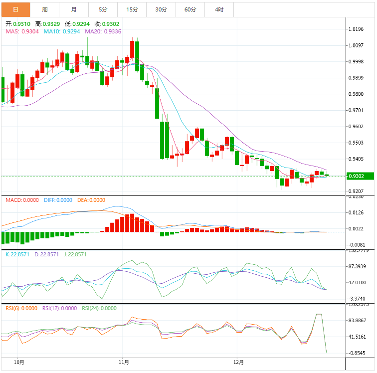 周二,美元/瑞郎处在0.9310-0.9330区间,延续上周五震荡走势。尽管汇市情绪积极,但瑞郎货币对仍维持在关键支撑位0.9300附近。截至发稿时,美元/瑞郎试图突破0.9330这一关键关口时遇到阻力。 基本面上,美元指数震荡于104.00附近,并显示出波动率收缩的迹象。全球市场维持假日情绪,导致交易活动清淡,预期美元指数将