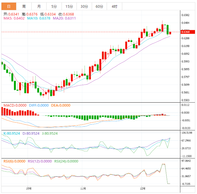 美元兑加元接受卖出价,刷新盘中低点1.3630左右,收复上周五早盘的失地。美元兑加元出现三周以来最大涨幅,原因是美元全面走强,而加拿大主要出口商品WTI原油价格走软。然而,早盘主要数据/事件的缺席以及美国12月活动数据之前的谨慎情绪似乎引发了该指数的最新回调。 美元指数出现10周以来最大涨幅,原因是全球央行