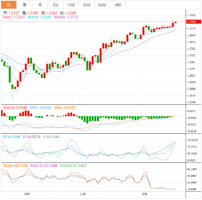 周三盘中,英镑兑美元上涨至1.2389,涨幅0.19%。 英镑基本面:英镑/美元依然整理于盘中高点附近,即使英国11月总体通胀率回落。该货币对在周三伦敦时段早盘反弹至1.2370。英国11月总体消费者物价指数(CI)年率自41年高点11.1%回落至10.7%,市场预期10.9%。更多细节表明剔除动荡的食品和能源项目的核心CI年率录得6.