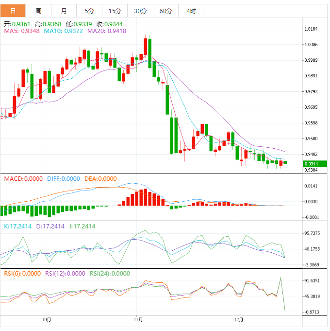 周二盘中,美元/瑞郎从上周的低点0.9313附近反弹,并上涨至0.9350,原因是市场情绪乐观,美元需求小幅上升。 基本面上,美国国债收益率上升,以及将于周二公布的影响市场经济数据提振了美元。发稿时,美元/瑞郎交投于0.9378,处在开盘水平上方。接下来,美国11月CI的早期信号暗示同比增长7.3%,低于之前的7.7%,而月