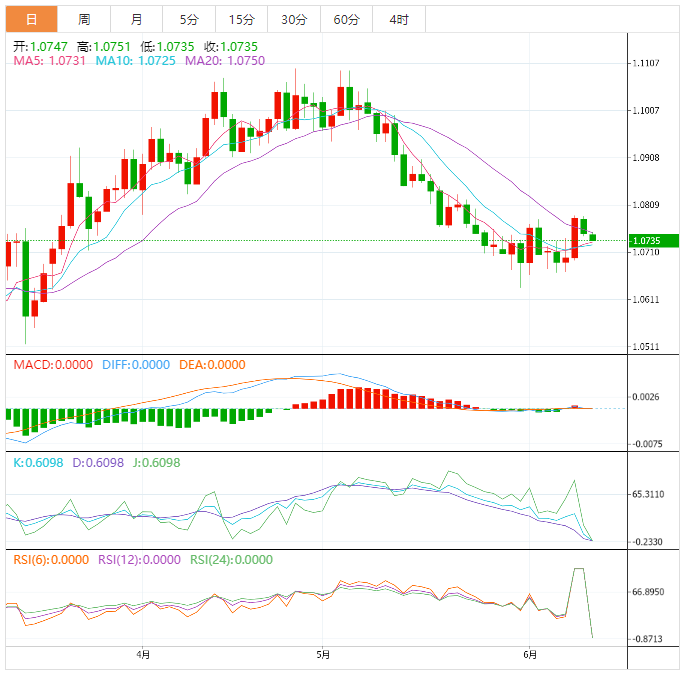 今日外汇市场走势分析 周一亚洲时段,美元指数窄幅震荡,目前交投于103.66附近;美元指数上周五(6月9日)从两周低位反弹,因上周四大跌后存在技术面反弹需求,更多投资者等待本周的通胀数据和美联储的利率决议,以寻找任何关于联储终端利率可能多高的新线索。 欧洲央行和日本央行也将在本周举行会议。预计欧洲央