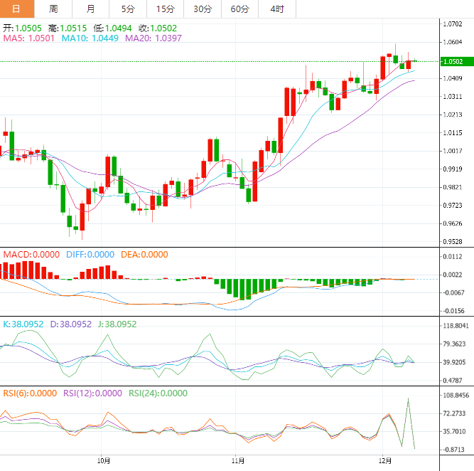 今日外汇市场走势分析 周四盘中,美元指数窄幅震荡,目前交投于105.34附近;美元周三下跌,人们担心利率上升可能将美国经济推向衰退,亚洲大国放松新冠限制打压美元的避险需求。 美元指数周三受到10日均线和200日均线的双重阻力压制,收盘下跌0.35%,收报105.20附近。欧元兑美元周三上涨0.37%,报1.0505美元。由于