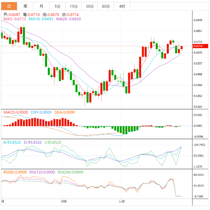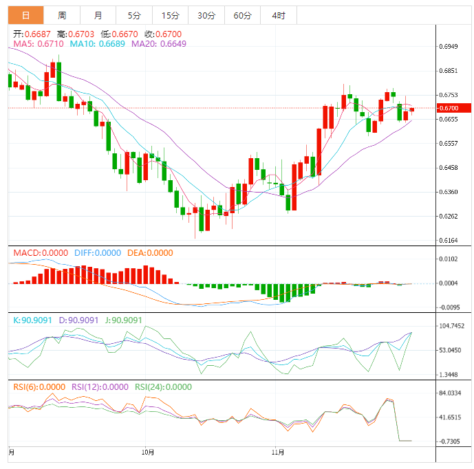 周三盘中,澳元兑美元上涨至0.6714,涨幅0.39%。 澳元基本面:虽然澳大利亚通胀率以及中国採购经理人指数数据表现不佳,但澳元/美元仍上涨试探了0.9705附近的盘中高点,为第二日上涨,交易员为美联储主席鲍威尔在周三早些时候的讲话做准备。澳大利亚的月度消费者物价指数(CI)跌破预期7.4%和前值7.3%至6.9%,同时印