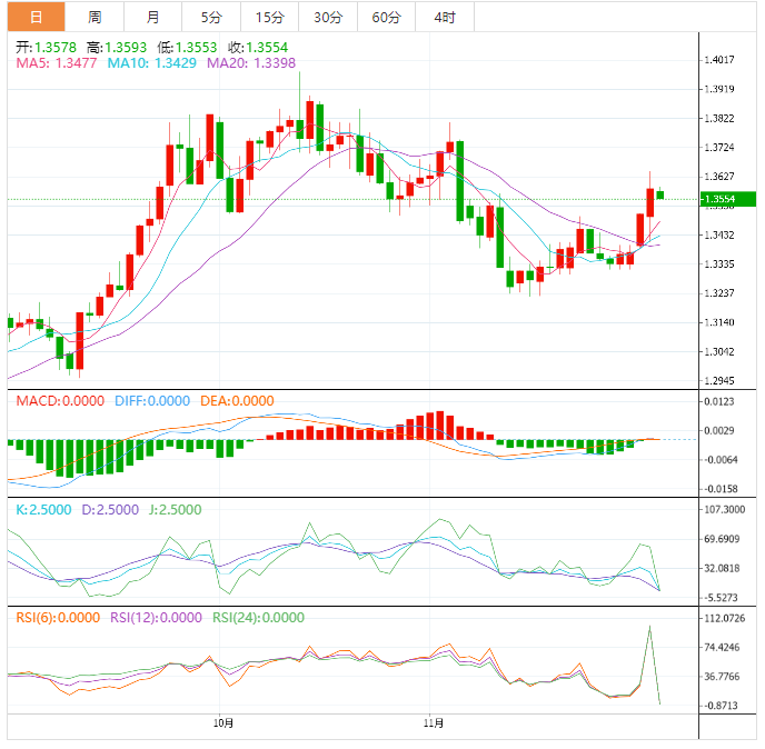 周三盘中,美元兑加元下跌至1.3555,跌幅0.18%。 加元基本面:美元/加元小幅走低并在周三欧市早盘刷新盘中底部1.3565附近。加拿大的主要出口项目WTI原油价格在关键数据/事件前因美元回落而走强,提振加元。美国11月谘商会消费者信心指数下降至100.2,前值从102.5下修至102.2。数据也有利于美元/加元空头。此外,加拿