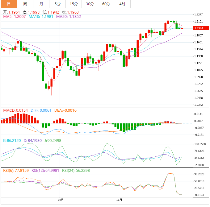 周三盘中,英镑兑美元上涨至1.1963,涨幅0.08%。 英镑基本面:英镑兑美元已经感受到相当大的买盘兴趣。随着风险偏好主题已经减弱,英镑正寻求向心理阻力1.2000延伸反弹。英国的通货膨胀率还没有显示出明显放缓的迹象,因此,英国央行(O)不能停止其政策收紧进程。摩根大通的分析师认为,英国央行将在明年第一季度将