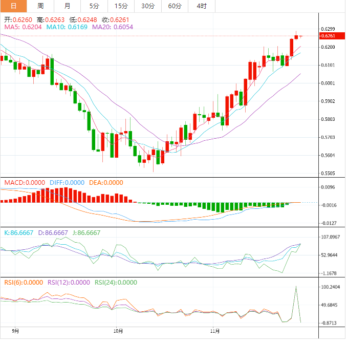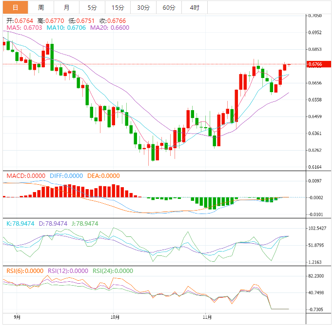 澳元延续了连续三天的涨势,并在周四收复了0.6700,这是由于美联储11月的会议记录,美元(UD)对大多数八国货币大幅贬值。由于美国感恩节的庆祝活动,澳元兑美元在周五交易清淡的交易日中触及日低点0.6726后,目前交易于0.6764。 澳元兑美元汇率走势基本面解读 美联储公开市场委员会(FOC)会议纪要的公布令美元承压