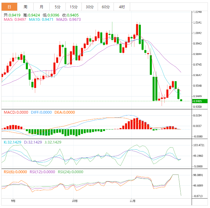在连续两个超级看跌的交易日之后,美元兑瑞郎在周四亚洲市场早盘徘徊在0.9423附近。在过去两个交易日中,熊市终结了投资者风险偏好飙升带动的连续6天的反弹。美国联邦公开市场委员会(FOC)会议纪要中不那么强硬的暗示引发了美元的抛售。 由于乐观的市场情绪将持续,预计该货币将进一步走软,并可能下滑至接近圆