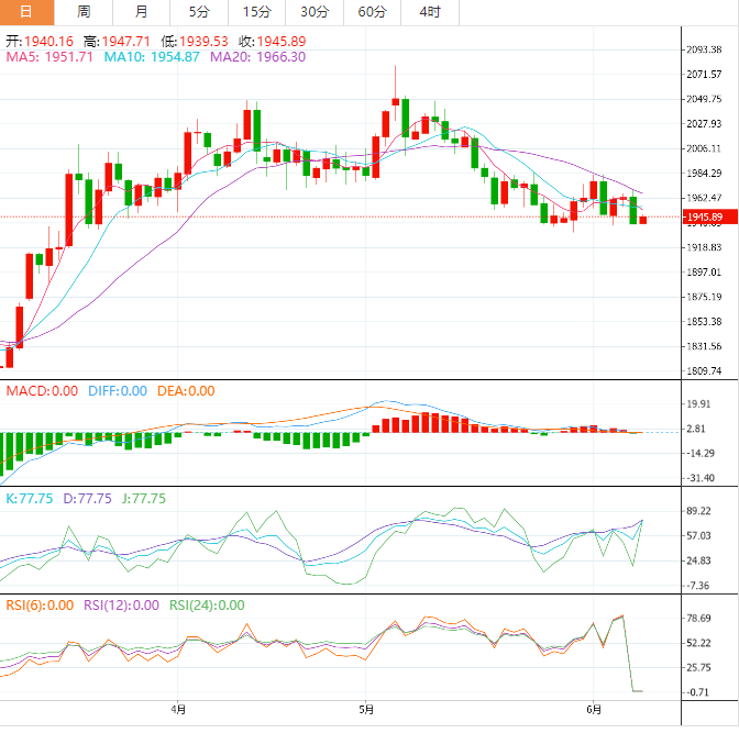 周四盘中,现货黄金小幅反弹,目前交投于1946.92美元/盎司,因美元小幅走弱。不过,目前市场普遍等待下周的美国5月份CI数据和美联储利率决议。市场预计美国核心CI将录得近一年半最低增速,给金价提供支撑。不过,由于本周加拿大央行和澳洲联储均意外加息25个基点,市场担忧美联储下周会维持鹰派预期,这帮助美债收益率