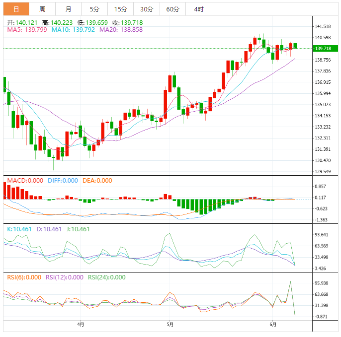 周四盘中,美元兑日元下跌至139.89,跌幅0.17%。 基本面上,美元/日元试图继隔夜从139.00关口即周线低点大幅反弹的势头后获利回吐,遇到一些供应。美元/日元目前交易在139.85附近,当天下跌近0.20%,但似乎难以实现明显反弹。市场预期日本央行会采取更大规模的干预措施以支持本国货币,且市场情绪谨慎,有利于避险盘
