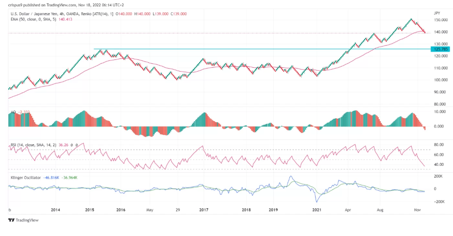 美元兑日元本周将基本持平,上周从147.00左右下跌至138.46,此前美国发布了疲软的通胀报告,引发了人们对美联储可能停止加息的猜测。然而,在本周,美元兑日元正在出现反弹。目前为止,美元兑日元的交易价格为140.37。 美元兑日元技术前景分析 尽管上周下跌接近5%,但美元兑日元仍有上行倾向。在输入本文时,美元