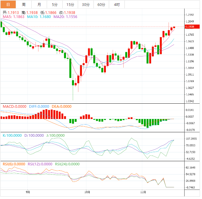周四盘中,英镑兑美元上涨至1.1938,涨幅0.20%。 英镑基本面:英镑兑美元在1.1880附近削减三日内首日跌势。汇价反弹脱离盘中低点,但依然看空,同时14天相对强弱指标录得看跌背离。汇价录得更高低点和RI相背离,加上连续三日录得更低的高点令英镑兑美元空头充满希望,交易员等待英国秋季声明。英国央行行长安德鲁?贝