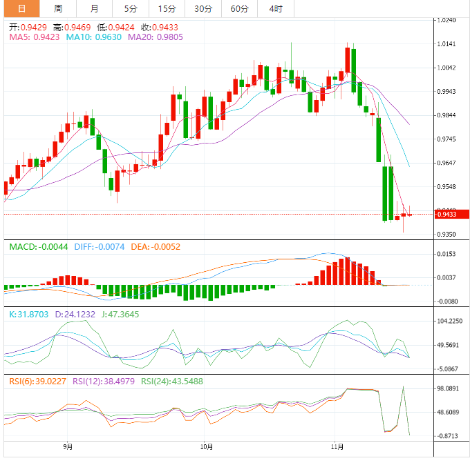 周三盘中,美元兑瑞郎下跌至0.9435,跌幅0.03%。 基本面上,美元兑瑞郎接受卖出价,逆转了早盘升至0.9440附近的涨势。这样一来,瑞郎扩大了从21週期移动均线的回调,同时描绘了一个看跌的旗形,表明美元兑瑞郎将进一步下跌。任何试图复甦的尝试都可能被视为卖出的机会,并面临著迅速消退的风险。另外,更广泛的市场风