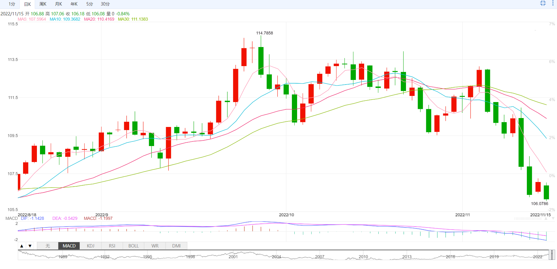 周二盘中,美元指数跌向106.18,跌幅0.66%。 第四季初以来美元走势不稳,美元指数上周创下2020年初以来最大周跌幅且连续第四周走低,自9月中旬以来首次跌破1.2000支撑位。鉴于基本面转向利好空头,技术面也颓势尽显,美元走软可能成为2022年剩余时间的关键主题。 特朗普周二将发表重要声明,可能宣布竞选2024年美
