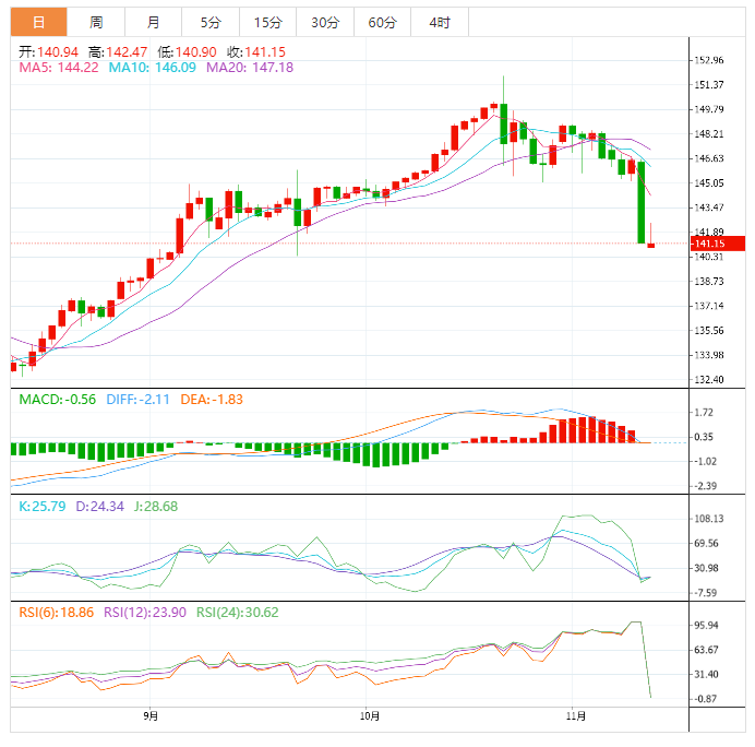 美元兑日元从141.00附近迅速上升至142.00以上。就像美元一样,在美国CI公布后,该货币对再次上升。 美元连夜下跌,原因是美国10月消费者价格指数升幅不及预期。10月份,美国消费者价格指数上升了0.3%,因为商品价格下降,服务价格下降,除了住房。9月份,食品价格上涨了0.8%,但10月份仅上涨了0.6%。投资者正在
