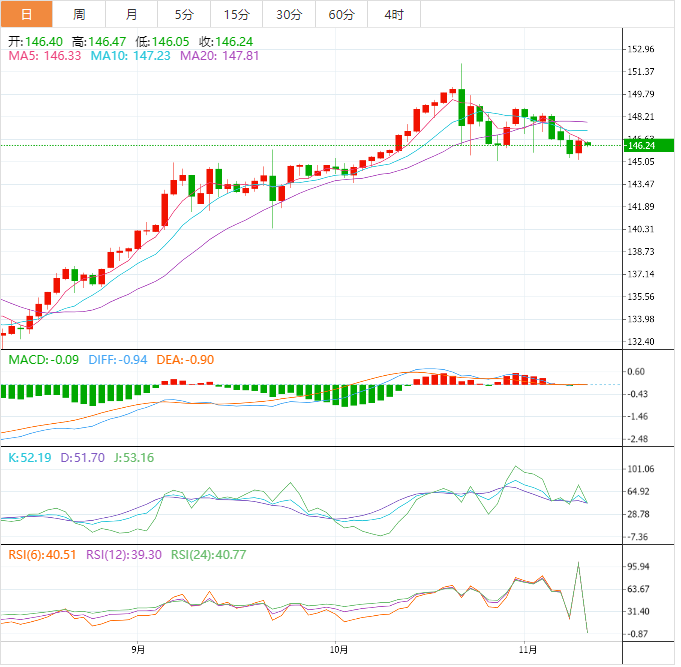 WTI原油期货价格下跌超过3%,至84.75美元左右的近两周低点,原因是上周石油库存增加,以及美联储最终利率达到高点的可能性增加。由于石油需求面临多重阻力,油价在跌破90美元的心理支撑后大幅下跌。 周三,美国能源情报署(IA)报告称,截至11月4日的一周,美国石油库存增加了392.5万桶。石油库存的增加给油价带