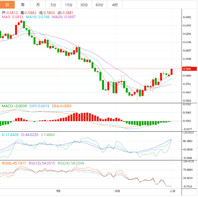 周二盘中,纽元兑美元上涨至0.5880,涨幅1.15%。 基本面上,纽元兑美元多头自8月底以来首次攻击50日A均线的阻力位,因为美元回落。汇价逐步走高至0.5865,同时料录得一周最大单日涨幅。展望未来,新西兰第三季度就业数据以及纽储行行长奥尔讲话将是汇价走势关键。若新西兰基本面强劲以及纽储行鹰派讲将推动该货币对