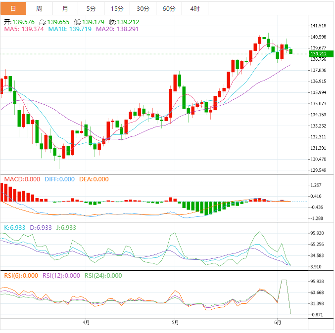 周二盘中,美元兑日元下跌至139.21,跌幅0.22%。 基本面上,美元/日元接近139.35附近的盘中底部。该货币对维持前日跌势,位于一周前的上升三角形内。除了看跌三角形,ACD信号看跌以及价格持续交投于100A均线下方也有利于美元/日元空头。不过汇价必须明显跌破上述三角形的底部线139.30附近才能得到空头的确认。