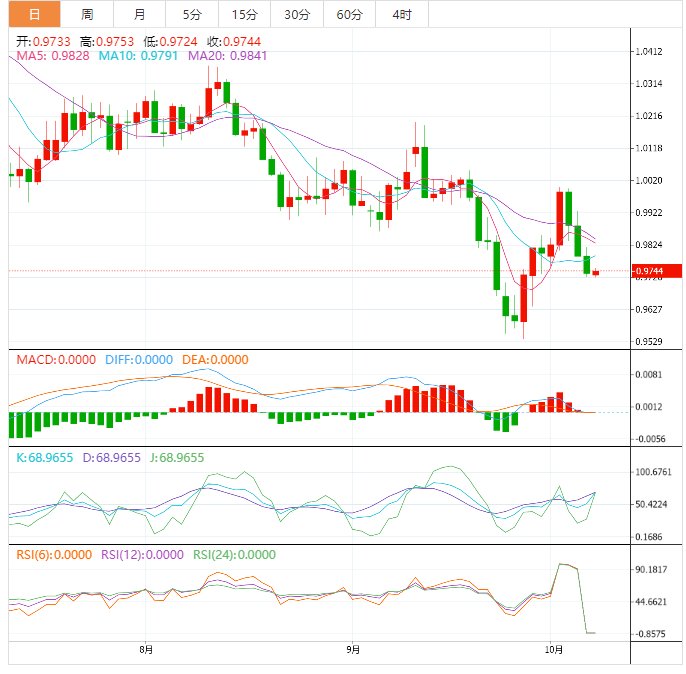 周一亚洲时段,欧元兑美元的空头在经历了三天的下跌趋势后,在0.9700左右短暂休整。本周美国联邦公开市场委员会(FOC)会议纪要和美国9月份消费者价格指数(CI)公布前的谨慎情绪也可能支撑了价格。 也就是说,美元指数在过去连续三天上涨后,挣扎在一周高点附近。这样一来,美元指标就停止了上周对9月底创下的20年高点