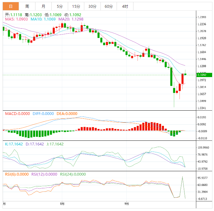 周五,英镑兑美元大幅反弹,收复了上周的部分失地,收于1.1200,此前英镑兑美元跌至1.0356的最低点,英镑兑美元逼近平价。随着亚洲交易时段的开始,英镑/美元的交易价为1.1133,比开盘价高出0.25%。 英镑/美元技术展望 从日线图来看,尽管本周出现了惊人的反弹,但英镑兑美元仍有向下的倾向。由于上周五600点的波