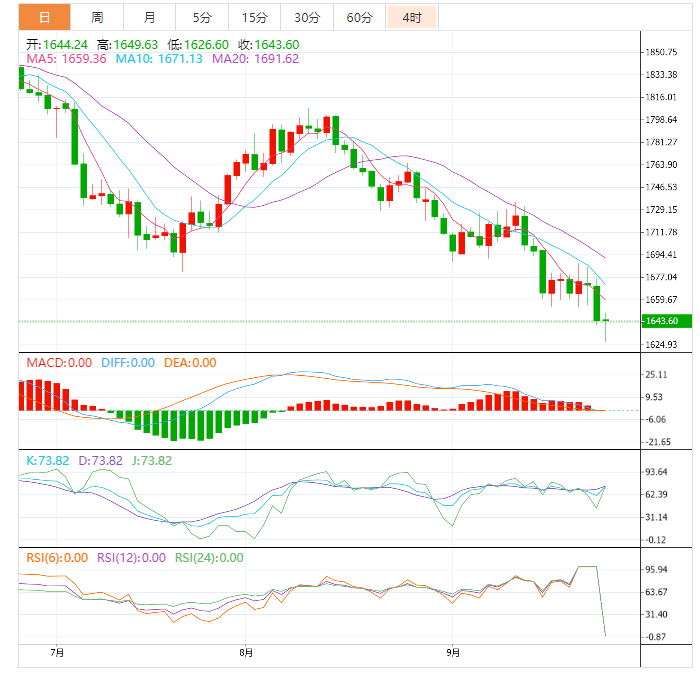 周一,现货黄金震荡下探,延续上周五跌势,最低触及1626.60美元/盎司,为2020年4月7日以来新低,英国政府推出减税政策,英镑大跌;亚特兰大联储主席博斯蒂克周日表示,鉴于经济的持续增长势头,他仍然相信美联储能够在不让经济出现大规模失业的情况下抑制通胀。共同推动美元刷新逾20年高点,令金价大幅承压。 美原油