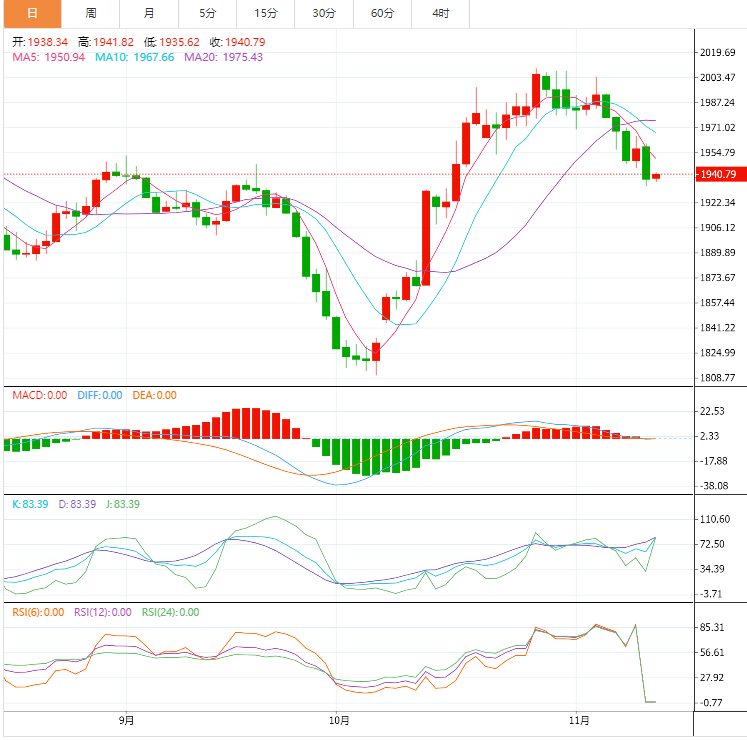 黄金市场行情分析 周一(11月13日)亚市盘中,现货黄金继续承压,金价现报1940美元/盎司附近。金价上周五从约1960美元/盎司的日内高点大幅回落。在60分钟走势图中,黄金价格完成从下行通道的向下突破。周二(11月14日)将迎来10月CI报告,进一步影响市场对于美联储2023年后的动向预期。 黄金市场消息汇总 华尔街